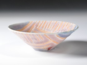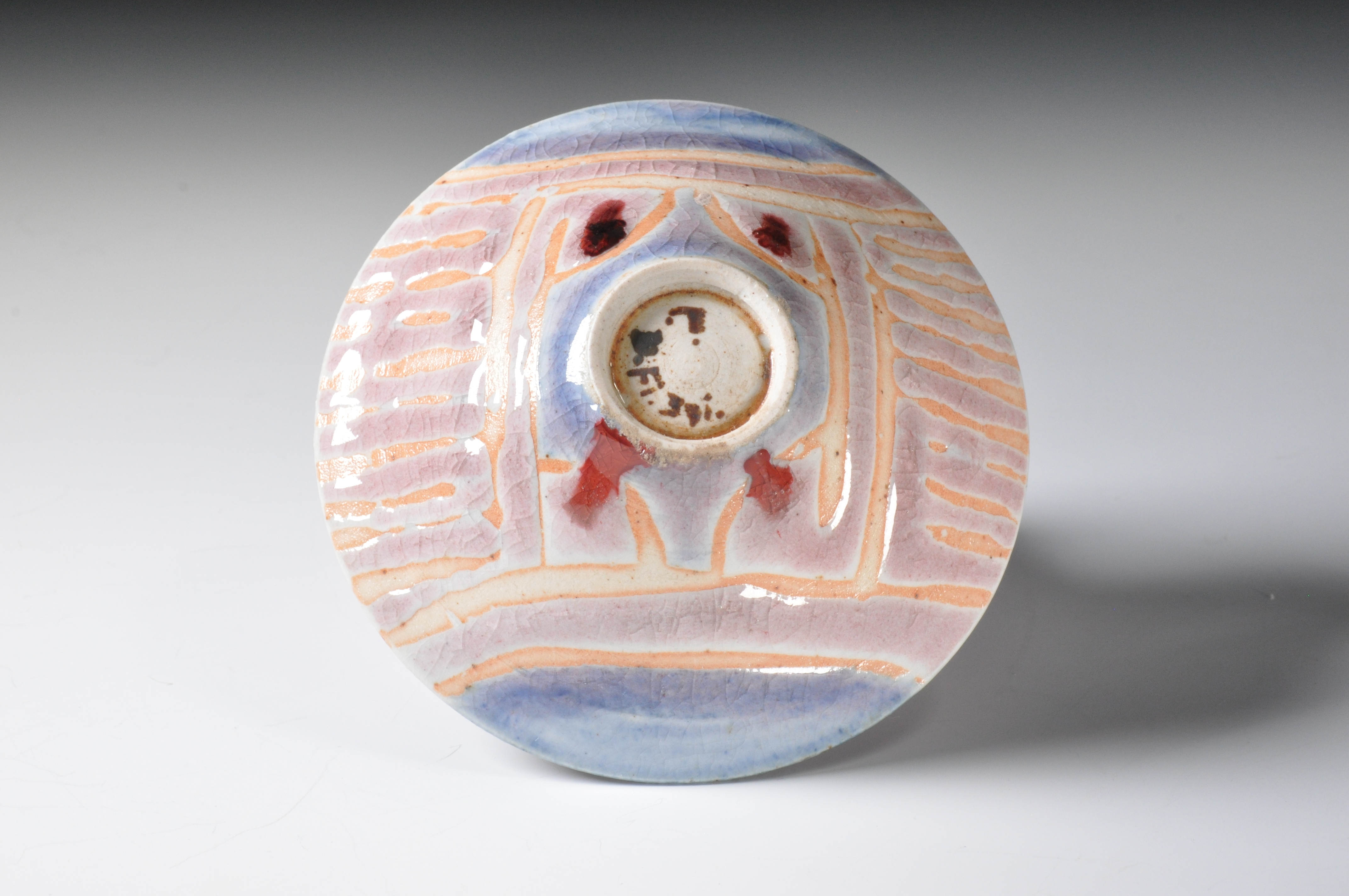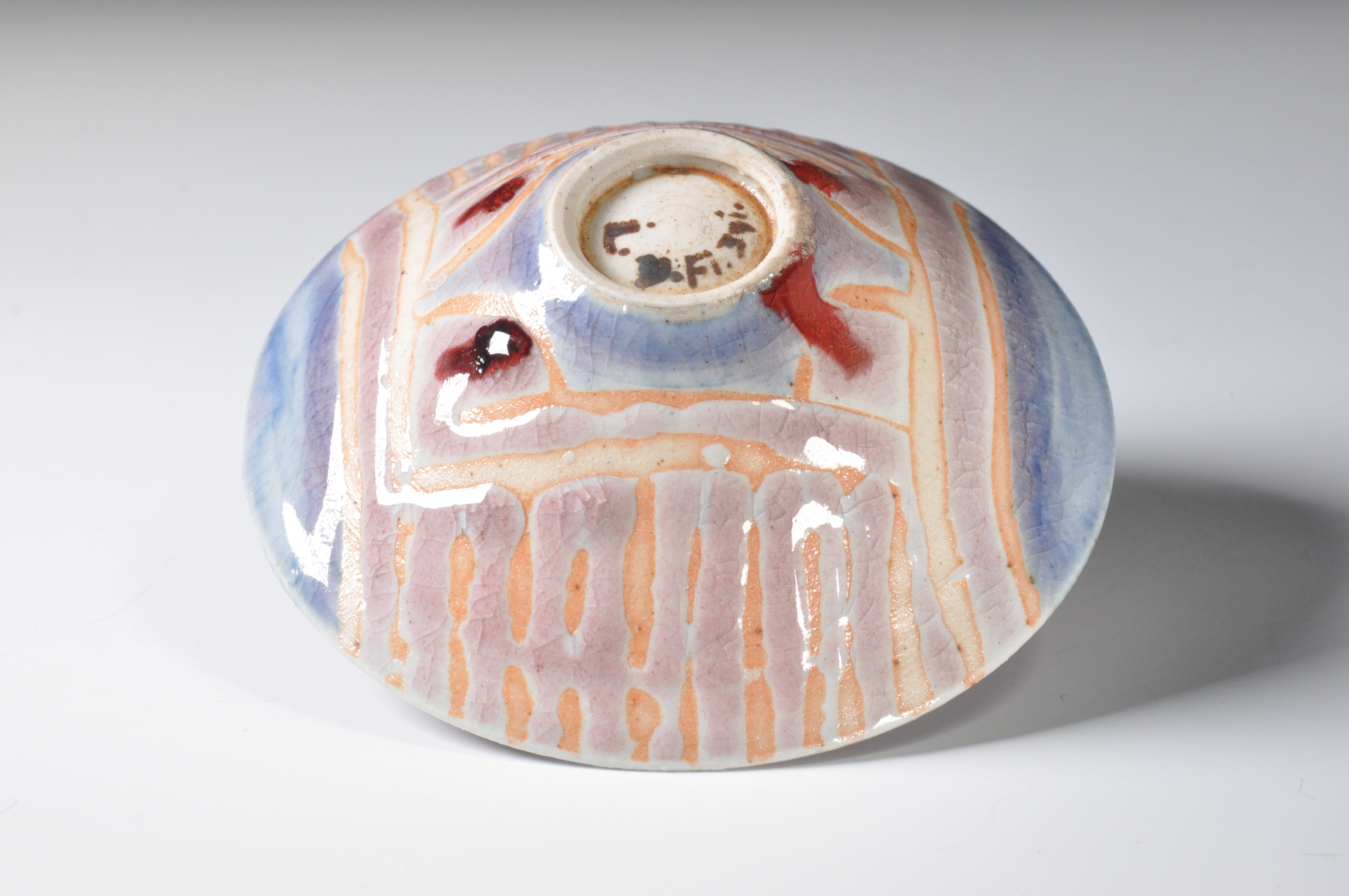 1986. Wax resist decoration, copper-red glaze. Wood fired.